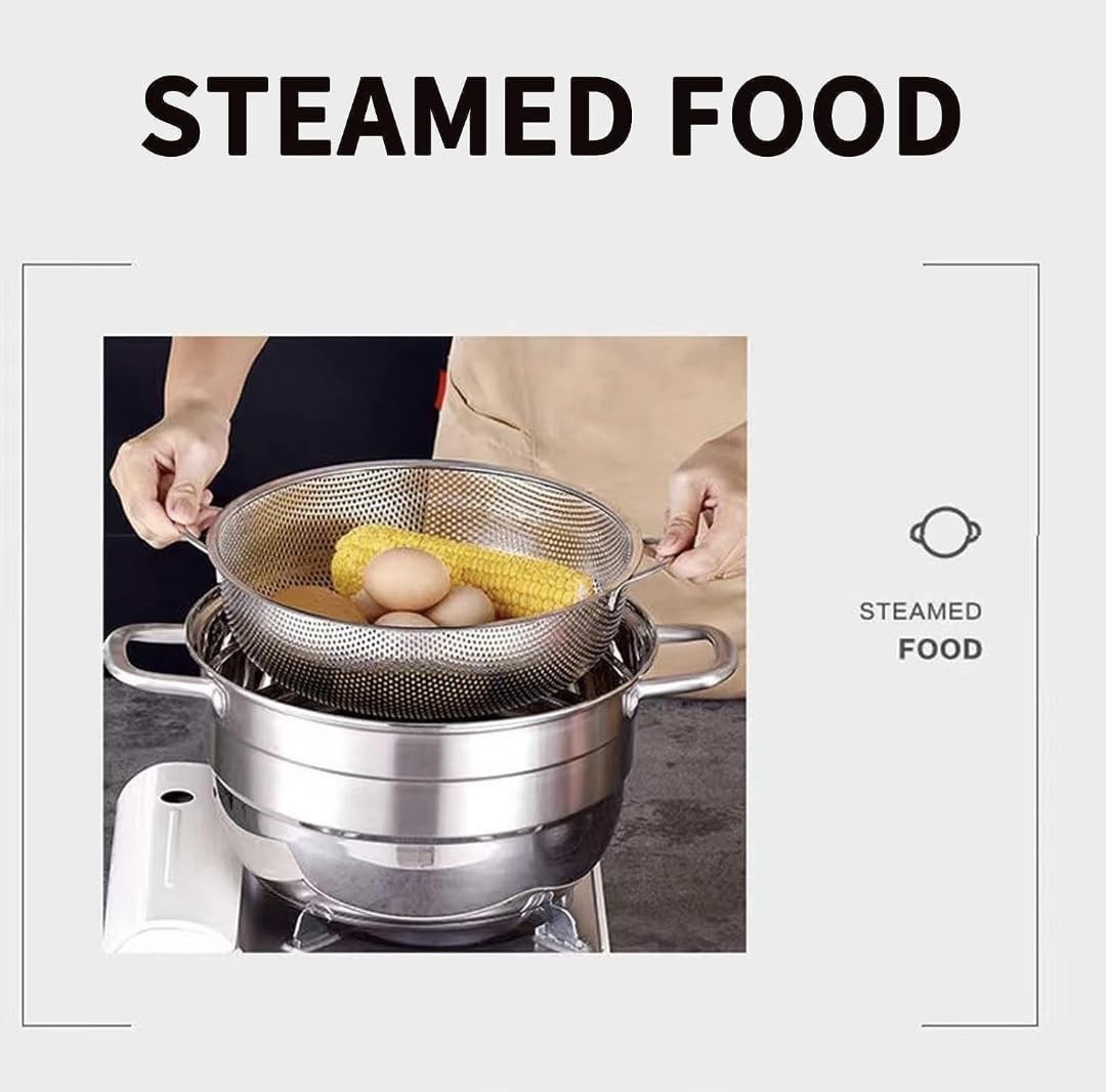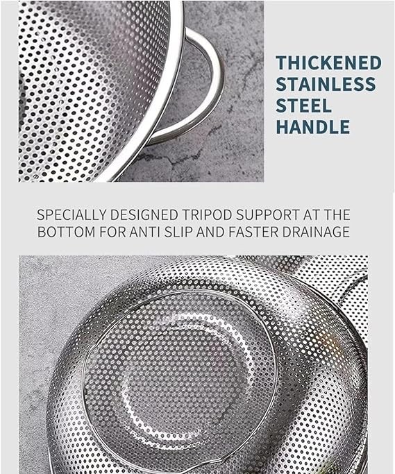 مصفاة من الستانلس ستيل للمطبخ من كليك ان شوب، سلة غسيل الفواكه والخضروات والارز، مصفاة شبكية دقيقة، مصفاة مطبخ بمقابض مطاطية قابلة للتوسيع للتصفية والتصريف والشطف