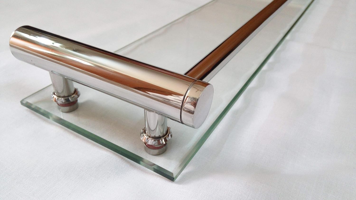 رف حمام من الزجاج المقوى مع حامل يثبت على الحائط بطول 16.5 بوصة من هوم ايدياز، مصنوع من النيكل المصقول والستانلس ستيل SUS304 المقاوم للصدأ، رف زجاجي بلوري، فضي