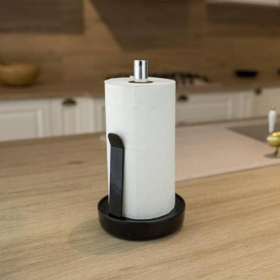 حامل بكر مناديل ورقية من بريمانوفا، موزع مناديل عمودي ممتاز لسطح المطبخ والخزانة، حامل مناديل ورقية صلب وشديد التحمل، بلاستيك (اسود)