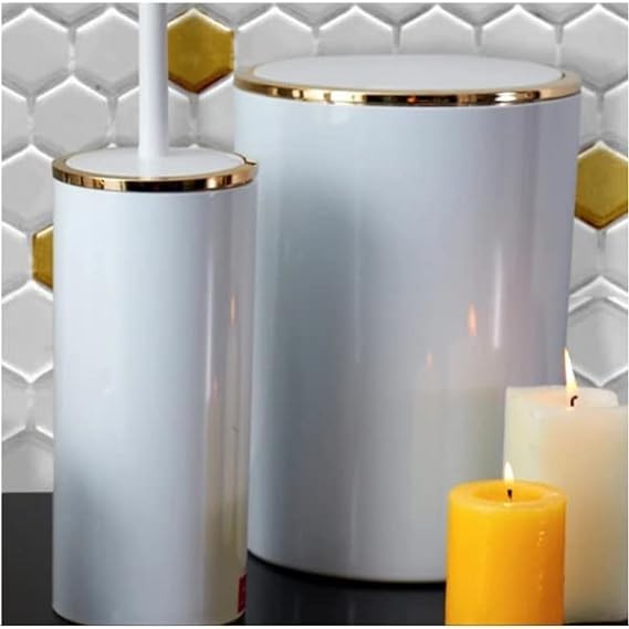 اكسسوارات حمام لينوكس اكريليك مكونة من (سلة قمامة 6 لتر - موزع صابون سائل - حامل للصابون - فرشاة تنظيف الحمام - حامل لفرشاة ومعجون الاسنان) من بريمانوفا - 5 قطع بلون ابيض وذهبي