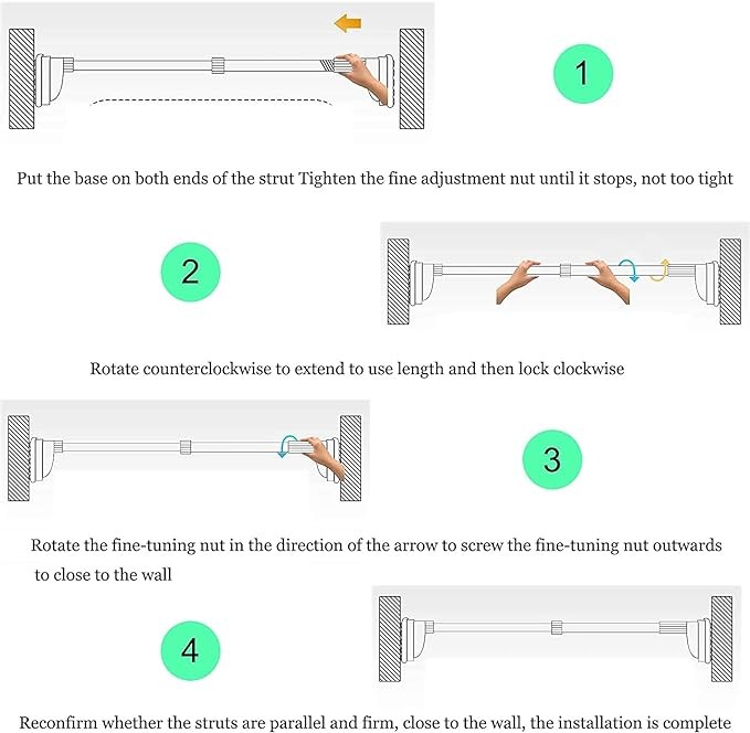 قضيب لستارة الحمام قصير قابل للتمديد مصنوع من الستانلس ستيل بتصميم عصري يمكنك تركيبه بدون الحاجة للحفر ملائم للحمام والخزانة والمدخل 140 -240 cm